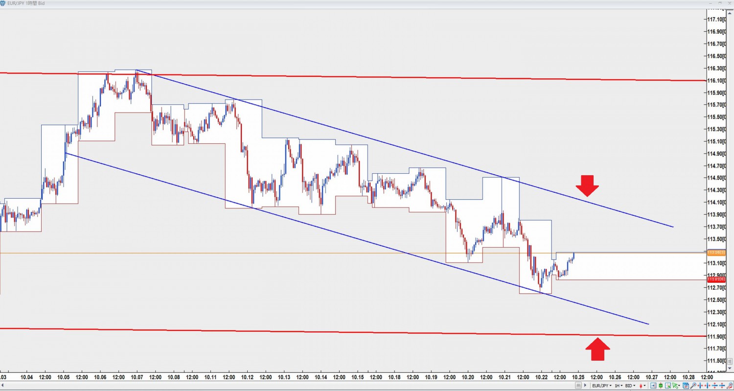週末の記事でも書きましたが、ユーロ円は4時間チャネル下限の押し目買いがポイントです。