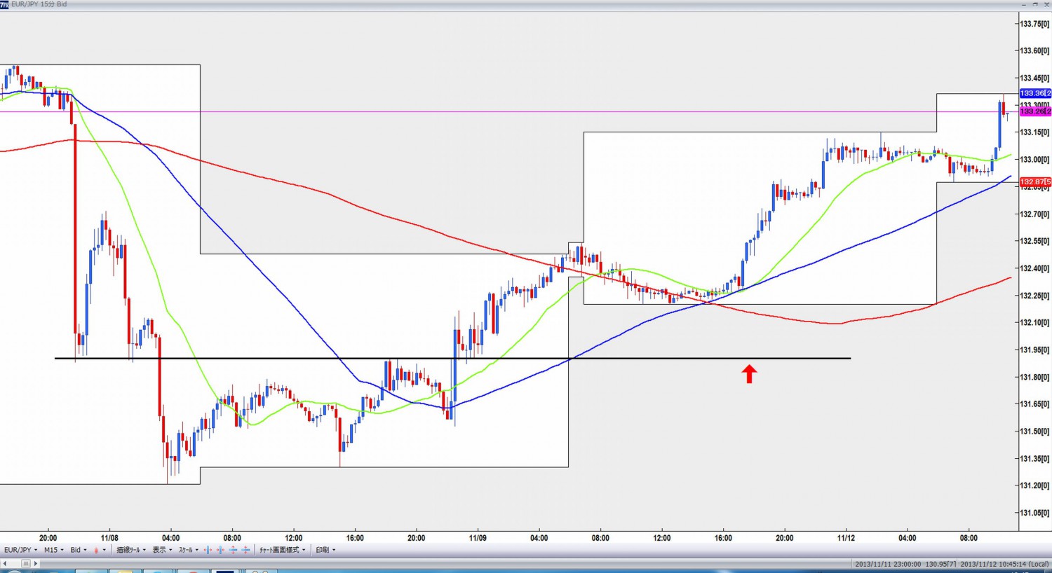 昨日はユロ円131.90付近の押し目買い狙いでしたがもうひと押しなくそのまま上昇になりましたね。